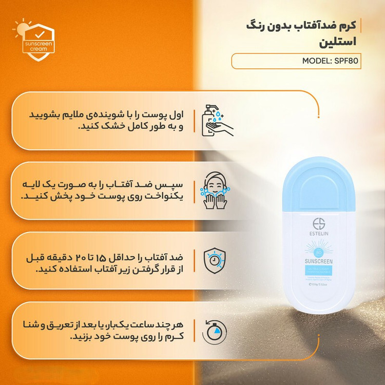 ضد آفتاب بی رنگ 100 گرمی SPF80 استلین ESTELIN