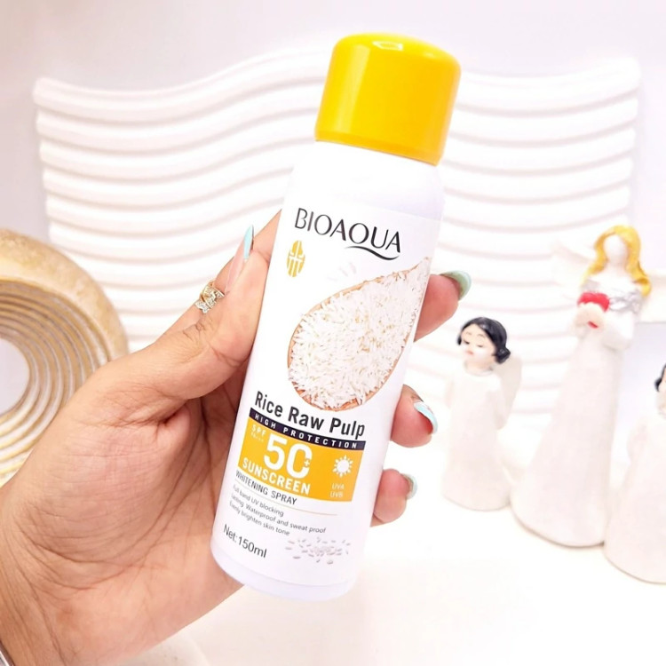 اسپری ضد آفتاب برنج برند بیوآکوا spf50 حجم 150 میل