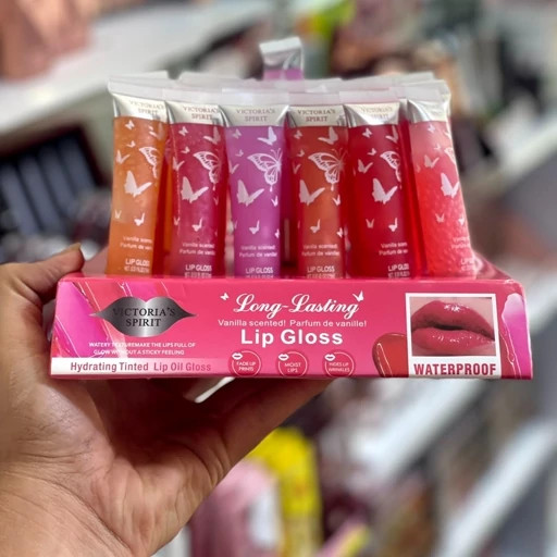 لیپ گلاس ویکتوریا اسپریت شاین میوه ای کار اصلی آن افزودن درخشش و گاهی رنگهای ملایم و ظریف به لبهاست. لیپ گلاسها در انواع مایع، کرمی و جامد تهیه میشوند و میتوانند نوع براق، شفاف و اکلیلی داشته باشند. از برق لبها برای ایجاد جذابیت بیشتر روی لب استفاده میشوند.